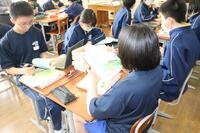 2024年4月30日 16時34分本日は今年度最初の校内授業研究会が行われました。3年生の国語の授業で、今まで学習したさまざまな表現技法を用いて、短文を作る授業でした。「ロマンチックな短文4つ」+「ストーリー性を持たせて」という課題に子どもたちは苦労していました。それでも、どの生徒も最後まで諦めずに考えていました。