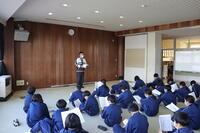 2024年1月16日 12時52分1学年では総合的な学習の時間を利用して、高校入試に向けて学年集会を開きました。実際に使われる県立高校の調査書の様式を見ながら、今からしっかりと勉強することの重要性について真剣に聞いていました。