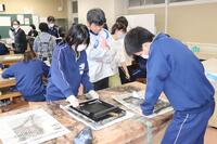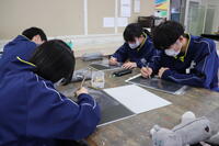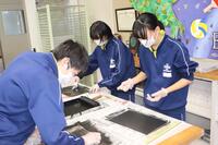 2023年12月5日 16時49分本日は第9回目の校内授業研究会が実施されました。2年生の美術科で、プラスチック版を使った凹版画の授業でした。生徒たちは自分の作品を納得がいくまで削ったり、プレス機を使って2,3回刷ったりと、集中して作業していました。