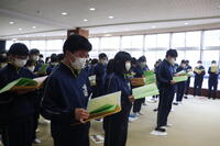 2023年12月15日 20時33分本日、3年生で学年集会が行われました。各クラスの代表の生徒が、2学期の反省を発表しました。発表した生徒達は、クラスや自分のことを客観的にふり返り、そして、これからの受験に向けてさらに努力していこうと意気込みを話していました。また、会のはじめには、終業式で歌う校歌の練習をしました。3年間で歌い続けてきた3年生の校歌は、響きのうつくしさや、声の力強さが感じられ、さすが3年生の歌声でした。