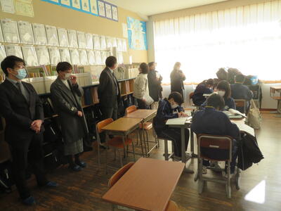 中学校の授業参観をしていただいた後、これまでの小中両校の取り組みや課題等について意見交換が行われました。いただいたご意見を今後の学校経営・学校運営に生かしていきたいと思います。