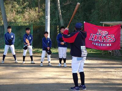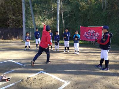 2023年12月4日 16時19分12月2日(土)に、レッドホープスのトレーナーの方を始め、投手や内野手の選手の方々に来ていただき、天栄中グラウンドで野球教室が行われました。