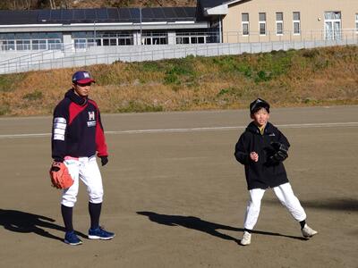 寒い中みんな一生懸命練習に取り組み、個別に指導もいただきました。練習後の質問にも丁寧に対応していただき、とても充実した野球教室になりました。