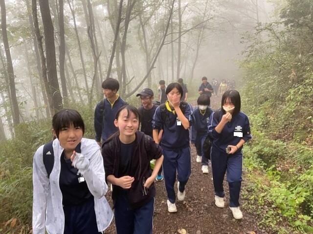 2023年9月28日 18時57分宇津峰山頂は、あいにくの霧で景色ははっきりとは見えませんでしたが、生徒達は、登った達成感があふれる表情でした。その後の芋煮会では、それぞれ、班やまわりと力を合わせ料理をつくりました。野外でなかまと食べるおいしさを存分に味わいました。今回の校外活動で、生徒達は登山や料理をする苦労を味わいながら、かけがえのない経験ができたようです。
