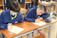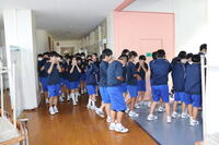 2023年10月10日 14時48分本日は火災を想定しての避難訓練が行われました。避難先は体育館でしたが、全校生徒が真剣に訓練に取り組んでいました。実施後の振り返り用紙にもしっかりまとめることができました。