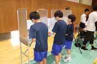 2023年9月19日 19時00分本日、生徒会役員選挙立会演説会を行いました。今回は、1,2年生合わせて9名の生徒が立候補し、選挙となりました。演説会では、立候補者一人一人、三中をよりよくしていきたいという想いを真剣に伝えていました。また、投票では、本物の記載台や投票箱を使って緊張したようすで投票しました。新しい三中のリーダーを中心に、新しい風を吹かせ、三中をさらに盛り上げていってほしいです。