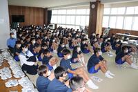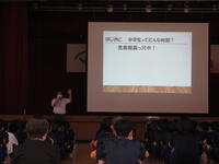 2023年9月4日 20時06分本日は1年生を対象に喫煙防止教室が行われました。講師として坪井病院の先生に来ていただき、喫煙が及ぼす害についてスライドを用いながらわかりやすく説明してくださいました。生徒たちも真剣に話を聞いていました。