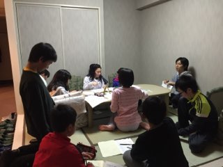 お風呂も入って班長会議です。1日の反省をしました。