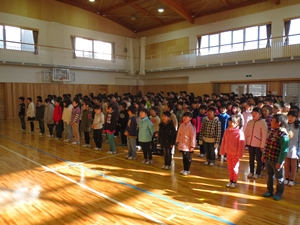 式の中では、6年生が、新年のめあての発表を行い、全校生に向けて「学年のまとめをしっかりしましょう。」「かぜをひかないように丈夫な体をつくりましょう。」と呼びかけました。