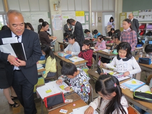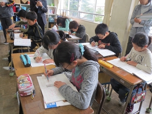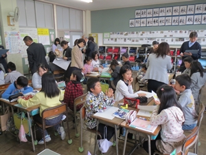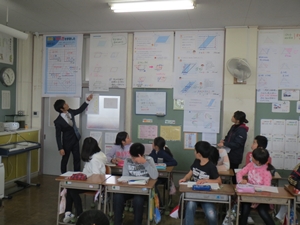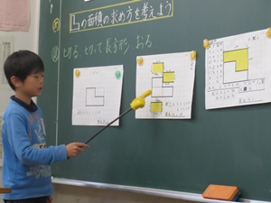 2015年11月24日 10時00分 11月20日(金)、須賀川市教育委員会から講師の先生をお招きし、4年生において授業研究会を行いました。教科は算数で、複合図形の面積の求め方を考える学習でした。子どもたちは、図形を切って分けたり、移動したり、欠けた部分を補ったりして、既習の長方形や正方形に直して面積を求めていました。その後の、自分の考えを友だちに伝えるグループ学習も活発に行われました。