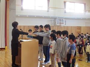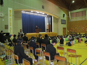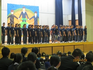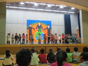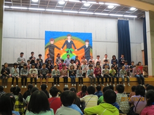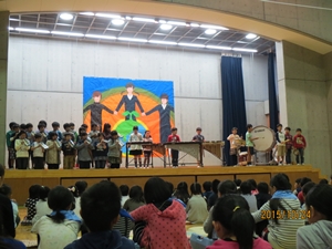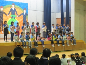 子どもたちは、自分のお父さんやお母さん方の他に、中学生、その保護者の方、中学校の先生方、そして地域の方と、大勢の人の前での発表となりましたが、大変堂々としていました。練習の成果を十分に発揮することができました。また、中学生のお兄さんやお姉さんたちの発表を聞くことで、中学生への尊敬やあこがれの気持ちも持つことができたように思います。