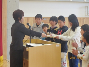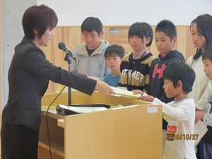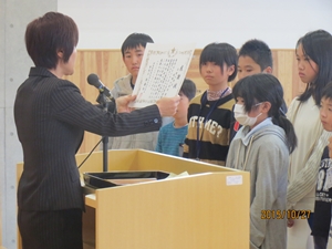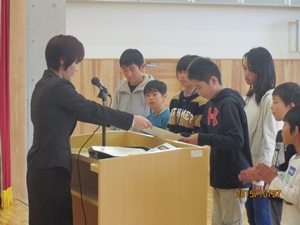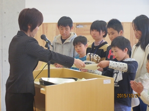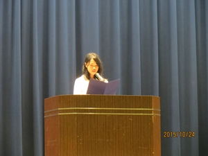 2015年10月28日 10時00分集会では、各種大会、コンクール入賞者への賞状伝達も行われました。