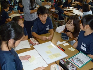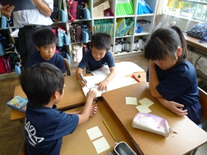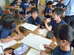 2015年9月24日 10時00分 9月17日(木)、3年生において授業研究が行われました。教科は国語、単元名は「つたえよう、楽しい学校生活」です。子どもたちは、1年生にどのような楽しい学校生活を伝えるかをグループの中で話し合う活動を通して、話し合いで大切なことや気をつけることなどを学び、「伝える力」を伸ばしました。