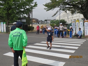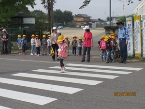 1・2年生は、横断歩道の正しい安全な渡り方を、東門前の横断歩道を実際に渡ることを通して学びました。左右の安全確認をしっかり行い、手を挙げて渡ることが上手にできました。