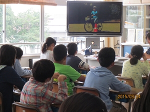 3~6年生は、自転車の安全な乗り方について、資料DVDを視聴することを通して学びました。「自転車に乗る」というと、どうしても被害者にならないための方法ばかりに気がいきがちですが、今回は「加害者にならない」ようにするための自転車の正しい乗り方についても学びました。