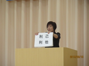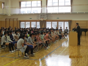 2015年9月15日 17時00分 9月15日(火)、全校集会が行われました。会では、学校長より次のような話がありました。「ある小学校に『リコ』さんという6年生がいました。登校班の班長さんです。4月に1年生が入りました。1年生はまだ体が小さく、ランドセルも重いので、歩くのが遅いのです。こんなことが毎日続くと、『リコ』さんは嫌になってしまい、『私一人なら早く学校につくのに。一人で登校したい!!』と思うようになりました。また、ある小学校に『リタ』さんとう6年生がいました。同じく登校班の班長さんで、1年生もいます。この1年生も体が小さく、ランドセルも重いので、歩くのが遅いのです。でも『リタ』さんは、その1年生に『大丈夫? がんばって。』と声をかけたり、ときには手荷物を持ってあげたりしました。2学期になると、1年生も歩くことになれ、お家の人に『めんどうをみてくれてありがとう。』と言われました。 さあ、みなさんは、『リコ』さんと『リタ』さん、どちらの6年生のようになりたいですか? 実は二人の名前の『リコ』と『リタ』、漢字で書くと『利己』と『利他』になります。『利己』は「自分さえよければいい。」という考え方です。『利他』は「人のことを考える。」ことです。稲田小のみなさんには、『利他』さんのような、人のために尽くす思いやりのある人になってほしいと思っています。」