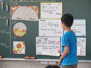 6月12日(金)、早速1回目の授業研究が6年1組となかよし学級で行われました。6年生の算数、円の複合図形の面積を求める方法を考える授業では、子どもたちが、自分が考えた解法を、言葉や式、図を用いて、友だちに分かりやすく伝えました。