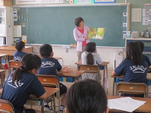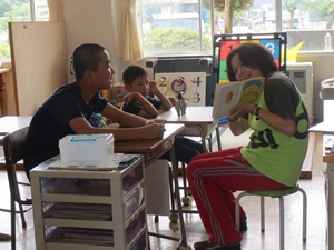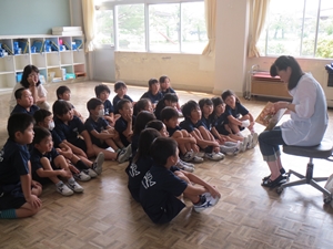 2015年6月16日 13時00分 6月16日(火)、「ほっとミルクの会」の皆様にご協力をいただき、今年度1回目のお話会が開催されました。おもしろいお話やジーンとくるお話、ドキドキワクワクするお話を、子どもたちは真剣に聞いていました。