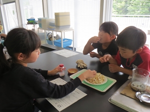 「トウモロコシをポップコーンにすると、重さは変わるのか?」を調べました。できたポップコーンはもちろんいただきました。