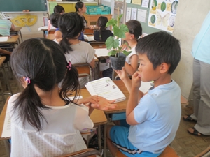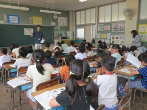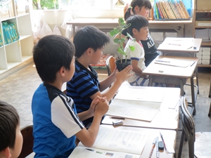 2015年5月27日 18時00分 27日(水)、3年生が総合的な学習の時間に、須賀川の特産物である「いわせきゅうり」について学習しました。講師としておいでいただいたJA稲田の方から、「いわせきゅうり」の魅力や作り方、農家の方の思いなどを教えていただきました。子どもたちは、真剣に話を聞き、一生懸命メモをとっていました。