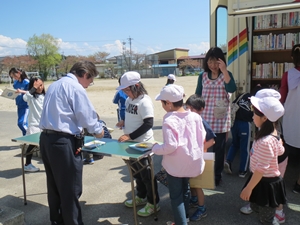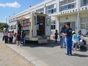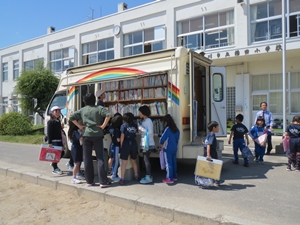2015年4月24日 10時00分 4月23日(木)、市の移動図書館「うつみね号」が来校し、多くの子どもたちが本を借りました。大切に読んでほしいです。