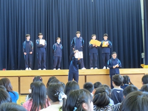 閉会式では、1年生がお礼として、暗記した「寿限無」を披露しました。大きな声で一生懸命発表した1年生に大きな拍手が送られました。