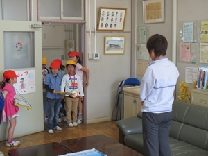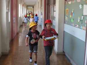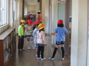 2015年4月30日 13時00分 4月30日(木)、1年生の「学校探検」が行われました。1年生は、まだ行ったことのない教室や2階を探検して楽しそうでした。探検の案内役は2年生でした。2年生は「ここは職員室って言うんだよ。」「ここは印刷室だよ。」と優しく教えていました。1年生も「失礼します。」「失礼しました。」のあいさつがしっかりできました。