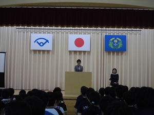 稲田中学校1年生職場体験発表→4年生