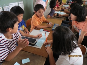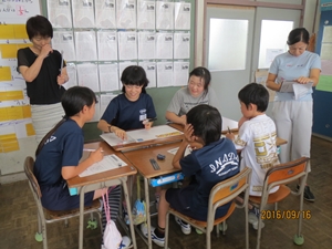 2016年9月16日 17時00分 今年度、稲田小・中学校では、小中一貫教育の一つとして「なりたい自分を目指して主体的に活動する児童(生徒)の育成〈( )は中学校〉」をテーマに、キャリア教育(一人一人の社会的・職業的自立に向け、必要な基盤となる能力や態度を育てることを通して、キャリア発達を促す教育)の研究を進めています。その校内授業研究が、9月16日(金)に、2・4・5年生において行われました。