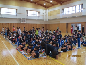 2016年9月20日 15時00分 9月20日(火)、全校集会が行われました。会の中で、学校長より次のような話がありました。