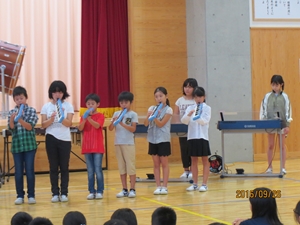 2016年9月26日 17時00分 9月26日(月)、今週29日(木)に須賀川市文化センターで行われる岩瀬地区音楽祭に参加する特設合奏部(4年生)の壮行会が行われました。