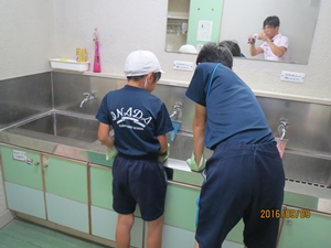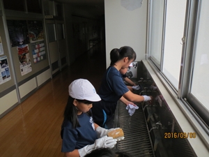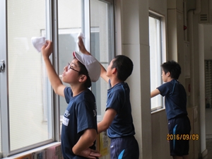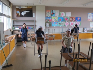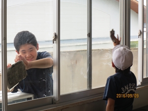 2016年9月9日 17時00分 9月9日(金)、「仲良く、協力、クリーン活動」を合言葉に、稲田小中合同ボランティア活動が行われました。小学生は、中学生の先輩方と一緒に、小中学校の教室や体育館、校庭の清掃を行いました。
