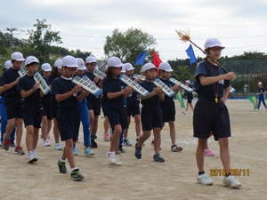 2016年9月12日 16時00分 9月11日(日)、稲田地域市民体育祭が行われ、5・6年生の鼓笛隊が参加しました。自分たちの地域の行事を盛り上げようと、一生懸命演奏しました。