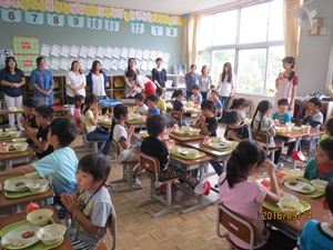 同日、給食試食会も開催され、今回は1年生の保護者の方にご参加いただき、1年生の配膳の様子をご覧いただいたり、子どもたちと同じ給食をご試食いただいたりしました。