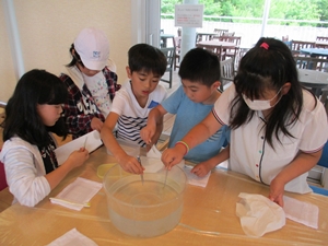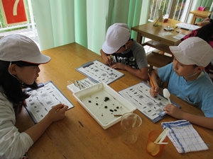 2016年6月28日 17時30分 6月24日(金)、5年生がムシテックワールドへ学習に出かけました。友だちと協力しながら、水生生物を観察したり、さかさまふりこや葉脈標本しおり制作を行ったりすることができました。