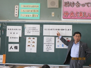 2016年6月28日 18時00分 6月28日(火)、5・6年生を対象に、「福島県弁護士会子どもの権利に関する委員会」より三名の弁護士の方を講師の先生としてお招きし、いじめ(防止)出前授業を行いました。