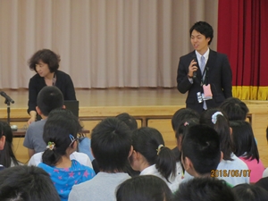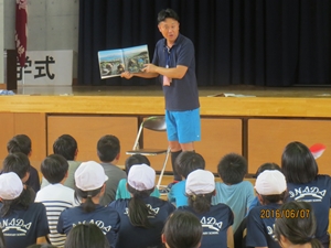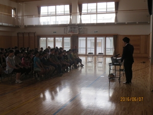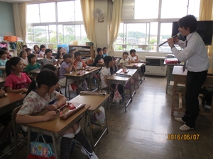 2016年6月8日 16時00分 6月7日(火)は1日フリー参観日でした。そこに、昨年度も大変お世話になった、伊達市の地域おこし支援員で、絵本セラピストでもいらっしゃる、山田昭彦先生(山田コーチ)においでいただき、全学年によみきかせをしていただきました。たくさんの子どもたちが「山田コーチ!!」と、山田先生にお会いするのを楽しみにしていました。