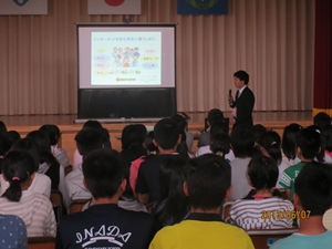 2016年6月8日 10時00分 6月7日(火)、5・6年生対象に、NTT東日本東北福島支店の浅井様とe‐ネットキャラバン事務局の安斎様に講師としておいでいただき、「e‐ネット安心講座」を開催しました。
