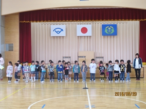 校歌を全校生で元気よく歌いました。