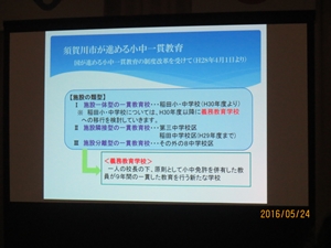 2016年5月25日 10時00分 5月24日(火)、本校体育館において、市主催による校舎改築地域説明会が行われました。会では、「小中一貫教育」須賀川モデルの概要(小中一貫教育の目的や教育の内容等)や新しくできる校舎、工期日程についての説明がありました。子どもたちの安全を第一に考え、また、できるだけ授業の妨げにならないように工事を進めていくとのことでした。