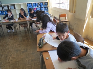 2016年5月12日 16時00分 地震で困っている熊本の人たちのためにできることを運営集会委員会の子どもたちが考えました。そして、たくさんの意見の中から学校で募金をして送ることになりました。今、同委員会では、募金を呼びかけるポスターを制作しています。
