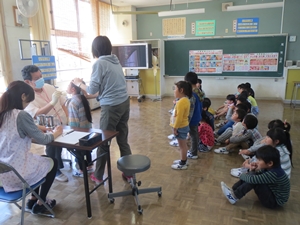 2016年5月18日 16時00分 5月18日(水)、1・2・6年生対象に歯科検診が行われました。写真は、1年生の受診の様子です。自分の番が来る前も、終わった後も静かに待つことができました。さらに、歯科医さんに診ていただくと「ありがとうございました。」と言うこともできました。