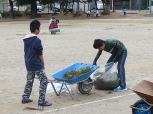 2016年4月26日 10時00分 4月23日(土)は、ご多用のところ、また朝早くから奉仕作業にご協力いただきまして誠にありがとうございました。たくさんの保護者の方、そして子どもたちにも作業を行っていただいたおかげで、校庭や花壇が大変きれいになりました。30日(土)の運動会も気持ちよく開催することができます。