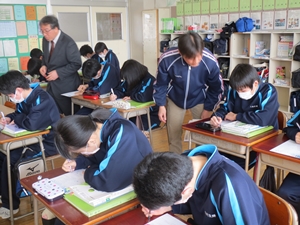 稲田小中学校では、中学校教諭が小学生に授業を行う「乗り入れ授業」や、今回のように、小学校教諭が中学生の学習をサポートする「T Tによる授業」を今後も進め、小中一貫教育を充実させていきます。