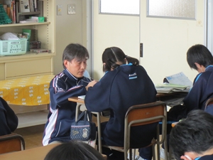 2016年3月15日 17時00分 3月15日(火)、稲田小中学校一貫教育の一環として、中学校数学の免許を持つ本校教諭が、稲田中学校2年生の数学の授業にT2として入り、生徒の学習をサポートしました。実は、この中学2年生は、本教諭が3年前に担任した子どもたちで、分からないところを気軽に質問する姿が見られました。