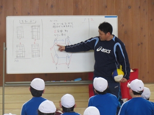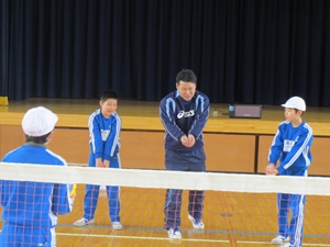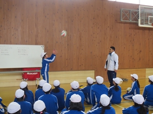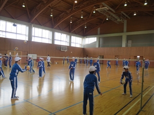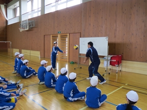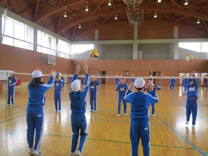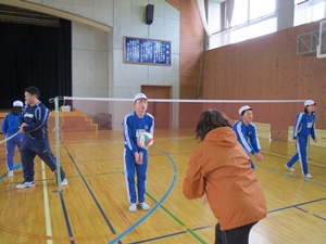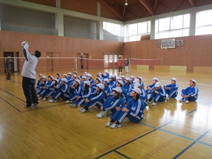 2016年3月16日 15時00分 3月16日(水)、稲田中学校体育科教諭による、6年生への乗り入れ授業が行われました。学習したのはバレーボールです。トスやアンダーパスのやり方を専門的に教えていただきました。ペアで練習をした後、チームを作ってミニゲームを行い、この日の成果を試しました。子どもたちは楽しそうに学習に取り組んでいました。