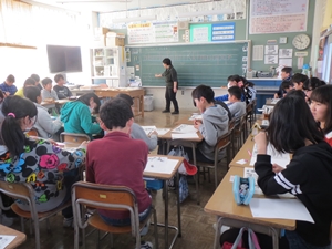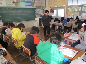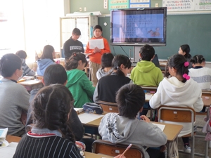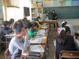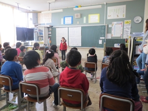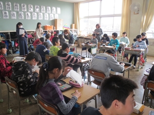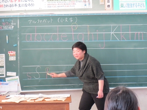 2016年3月1日 19時00分 3月1日(火)、6年生対象に、2回目となる稲田中学校英語教諭による乗り入れ授業が行われました。今回は、アルファベットの小文字の書き方について学習しました。みんな真剣に中学校の先生のお話を聞いていました。