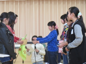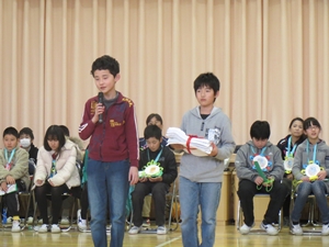 6年生からのお礼の言葉と手縫いの雑巾が下級生に送られました。