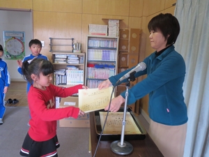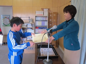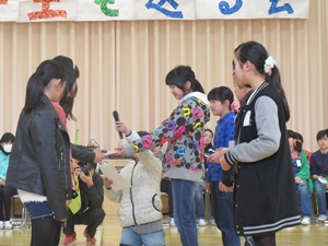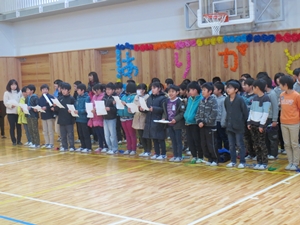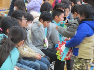 1年生から6年生に、心のこもった手作りのメダルが贈られました。