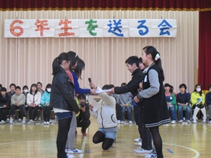 今回の「6年生を送る会」も、6年生はもちろん、全校生の思い出に残るものになりました。1~5年生が、6年生のために準備や練習を一生懸命行ってきたからです。中でも5年生は、実行委員として、学校の中心になって会を運営しました。大変立派でした。